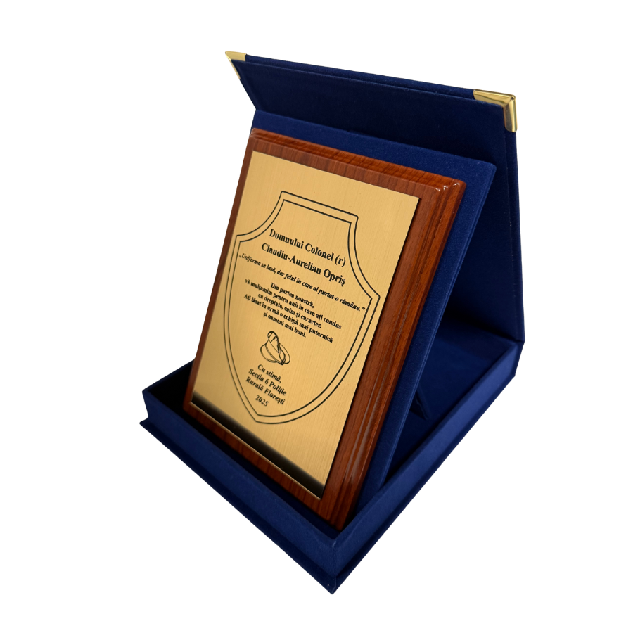 Oferă un cadou memorabil și elegant cu Cutia din Catifea Albastră cu Plachetă din Lemn, un produs premium creat pentru momentele cu adevărat speciale. Cu un design modern și accente luxoase, această cutie reprezintă alegerea perfectă pentru cadouri corporate, aniversări, momente festive sau recunoașterea meritelor.