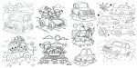 Planșa îi transportă pe copii într-o prezentare a diferitelor tipuri de mașini.