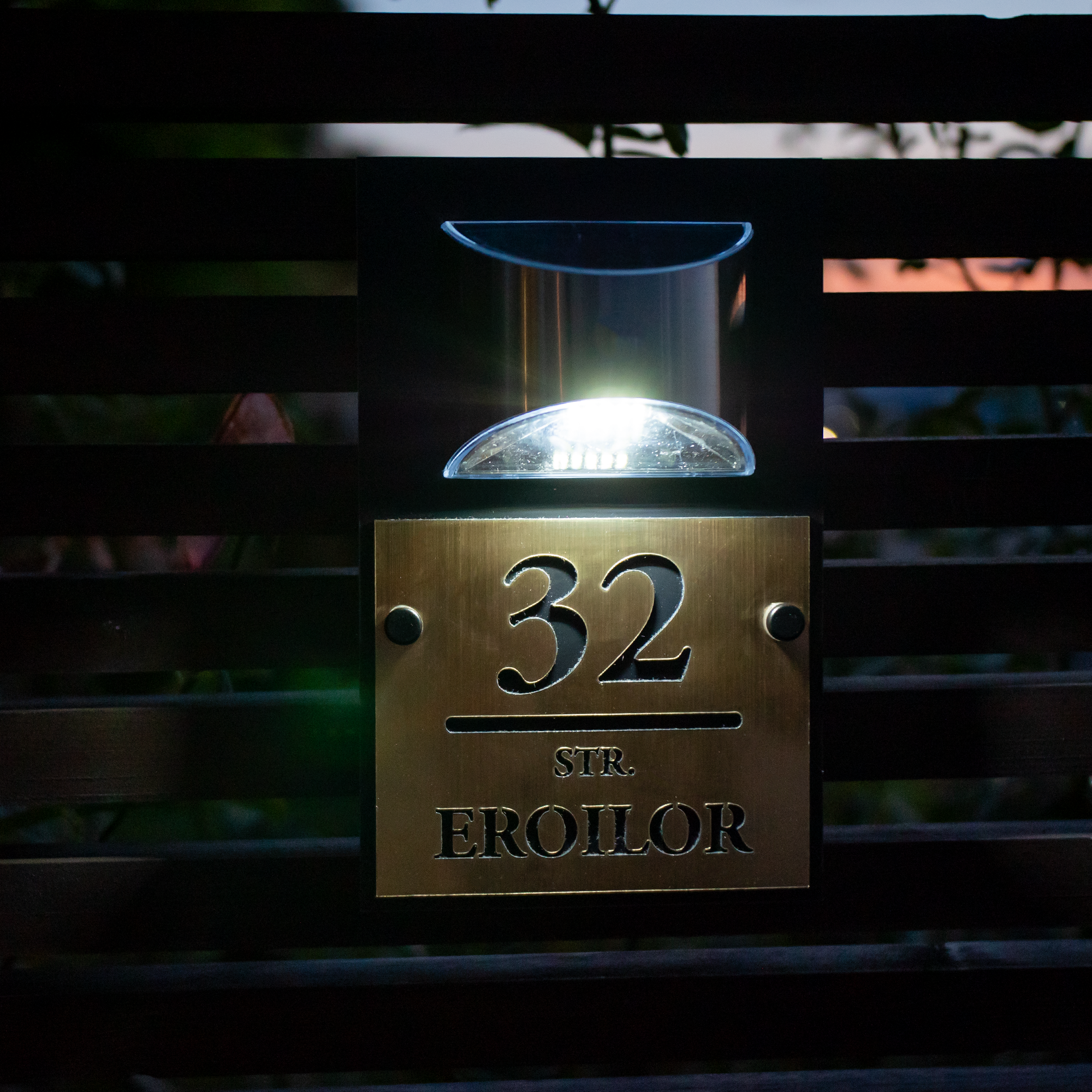 Office Plus Center îți oferă numere de casă personalizate cu lampă solară. Acesta va da o notă personală și elegantă casei tale, de asemenea vine însoțit de 2 distanțiere negre din oțel pentru a oferi o mai bună protecție și durabilitate. De asemenea, acest model de număr de casă este realizat din ABS rezistent la impact și UV.